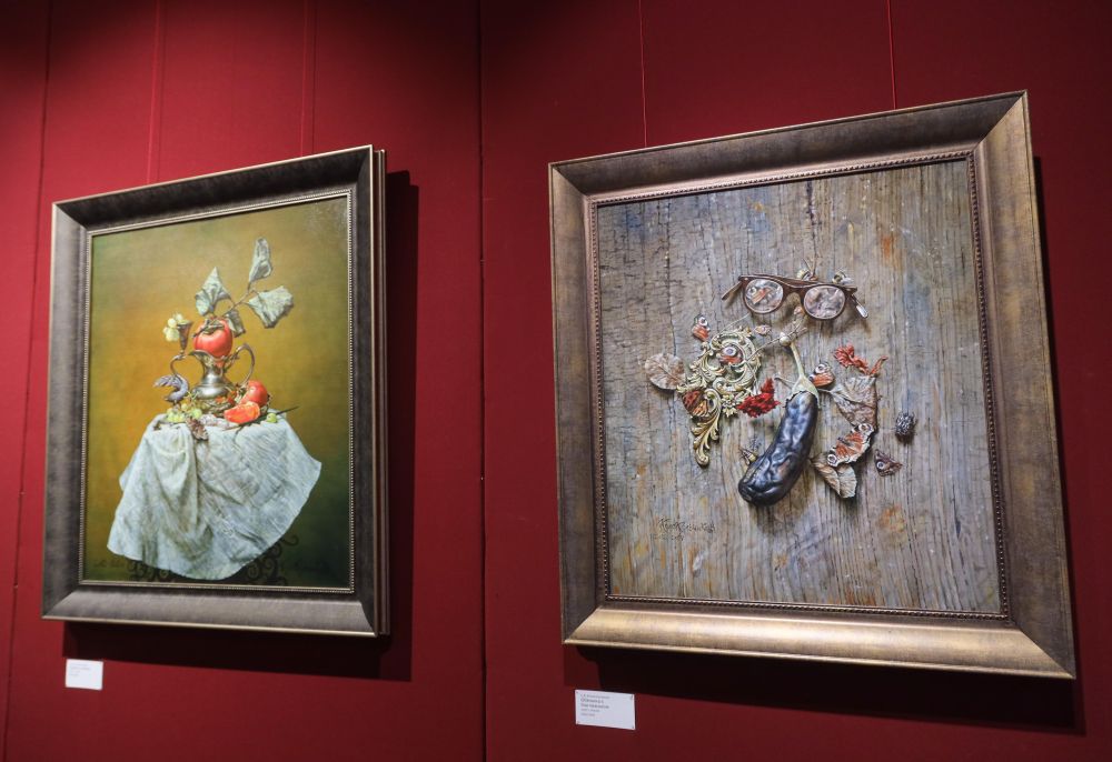 Во втором зале выставка открывается работами Натальи Артёмовой: от ярких цветочных букетов словно исходит собственный свет. По другую сторону — академичные и аристократические натюрморты Валерия Секрета, выполненные в приглушённых цветах. Насыщенная многослойная графика Ольги Мельгуновой спорит с лаконичной живописью Сергея Полякова.