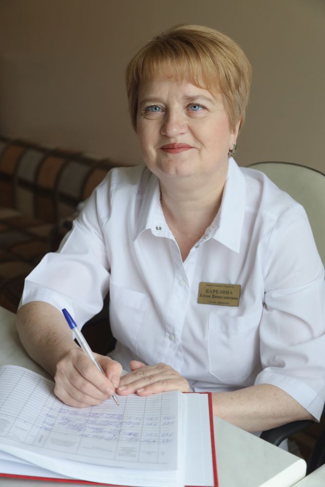 Елена Вячеславовна КАРЕЛИНА — старшая медицинская сестра педиатрического отделения. Родилась и выросла в Александрове, образование получала в медицинском училище в Орехово-Зуеве. Получила диплом по специальности «медицинская сестра детских лечебно-профилактических учреждений».