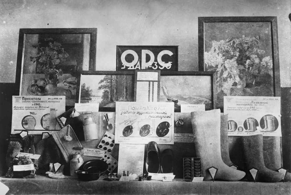 Образцы продукции ОРСа: одежда, обувь, посуда, пуговицы, портсигары и мундштуки, различные бытовые изделия