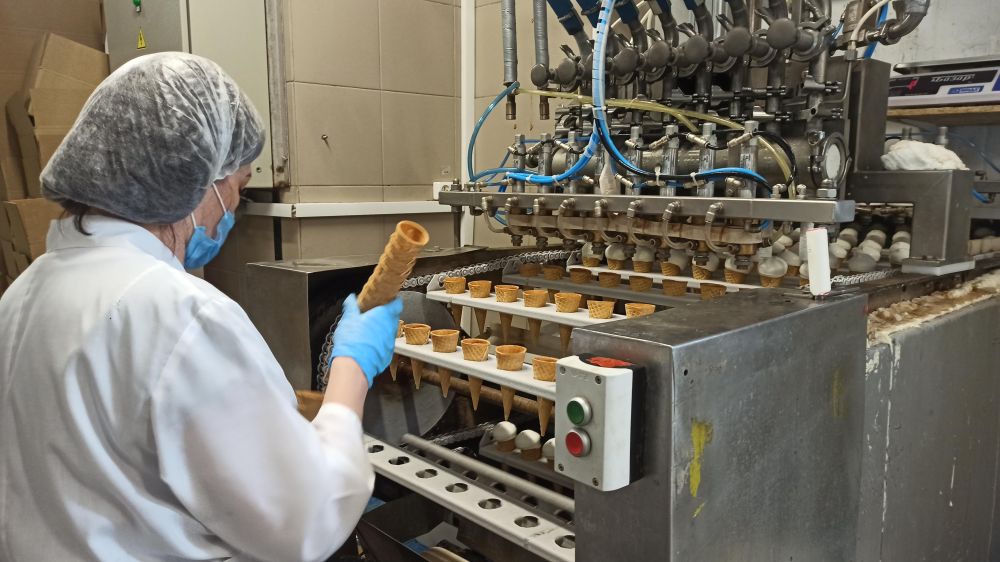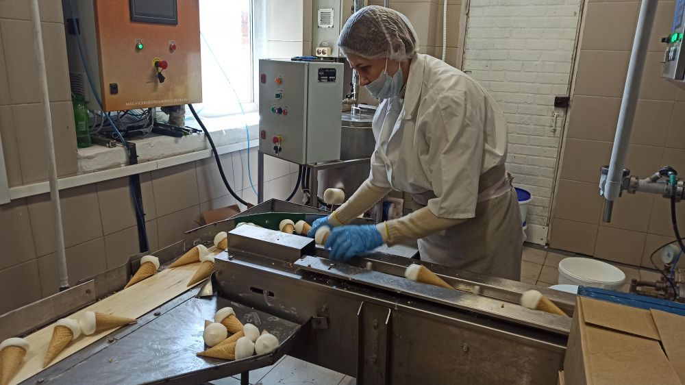 «Сейчас на линии шоколадные брикеты. Родоначальником фасовки мороженого в таком виде была именно Россия. Только позже брикеты появились и в Европе», — поясняет начальник производства.