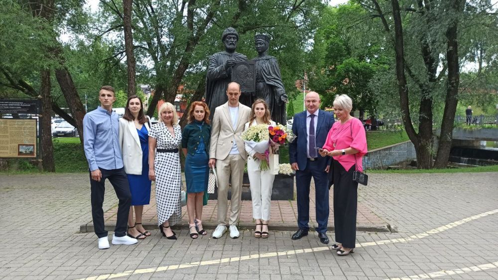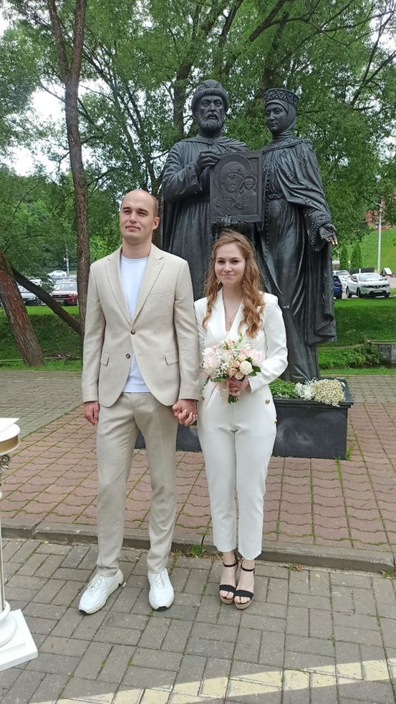 В Сергиевом Посаде 8 июля, в День семьи, любви и верности, отметили регистрацией бракосочетания у памятника святым Петру и Февронии Муромским, покровителям брака в православии. Молодая пара – Игорь Глухов и Юлия Покровская — специально приехали в Сергиев Посад для росписи из Москвы.