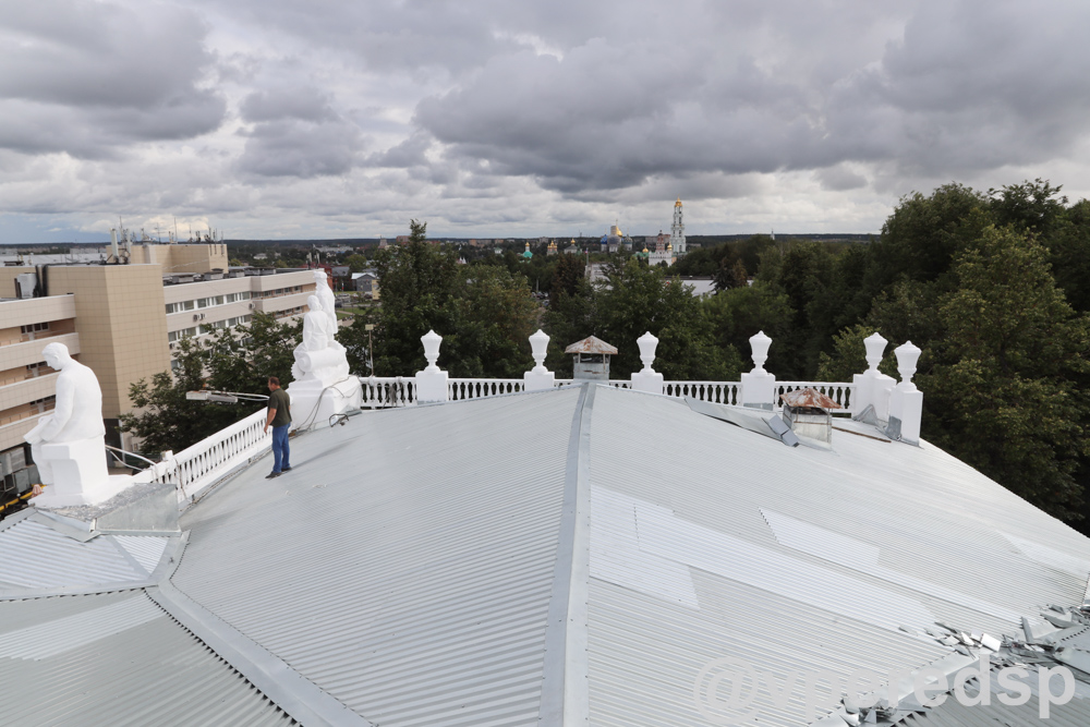 «Каждый год в июле месяце мы её опускаем и полностью проводим регламентные работы: заменяем то, что перегорело, меняем проводку, отмываем всю балюстраду. На это уходит минимум неделя», — пояснил директор ДК.