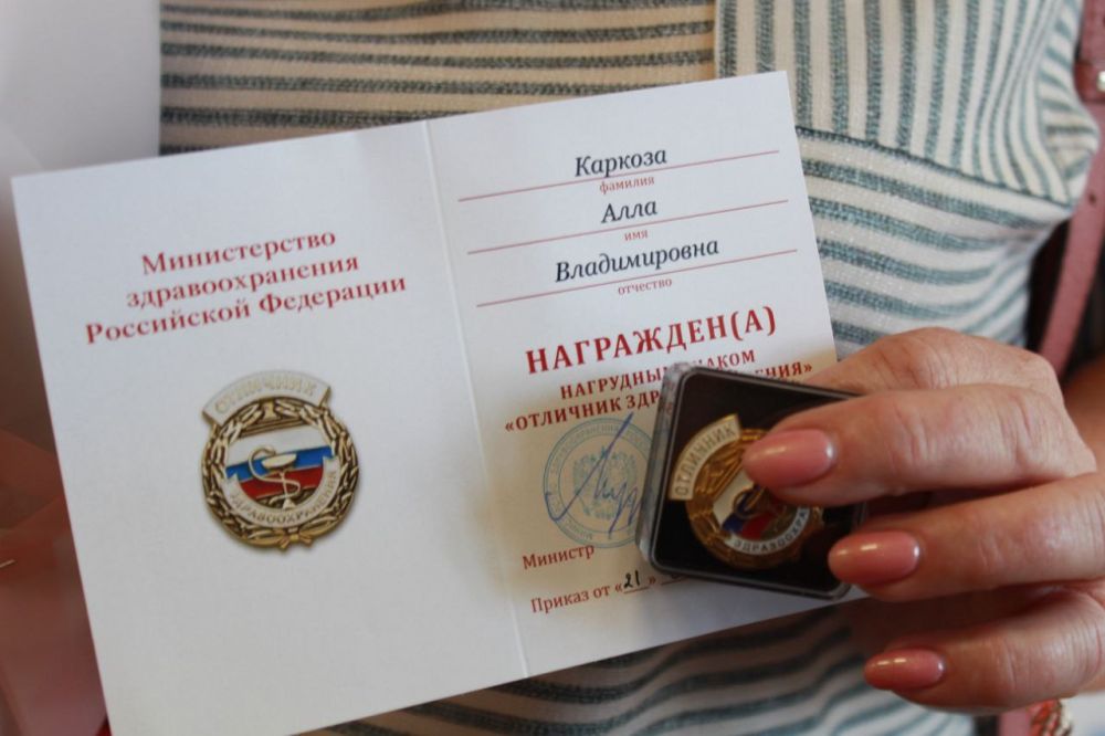 В последний рабочий день главный врач Сергиево-Посадской районной больницы Олег Дмитриев вручил Алле Каркоза нагрудный знак отличника здравоохранения (награда присвоена в соответствии с приказом Министерства здравоохранения РФ). «Алла Владимировна — достойный пример для всех нас. Многие сотрудники нашего учреждения гораздо младше её трудового стажа. И все эти годы она была верна выбранному когда-то делу», — подчеркнул Олег Дмитриев.