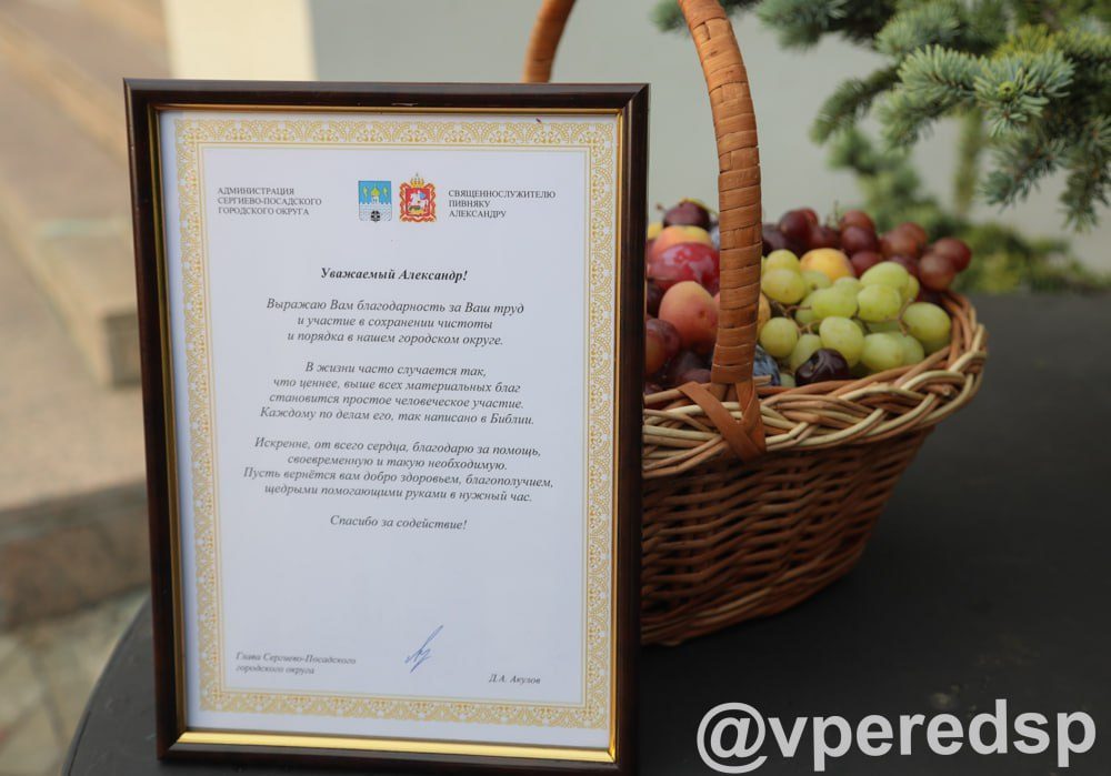 Добрые дела не остаются незамеченными: в Сергиевом Посаде священник по велению души благоустраивает город. Глава округа Дмитрий АКУЛОВ и депутат окружного Совета Андрей МАРДАСОВ посетили храм на улице Пограничной, чтобы выразить батюшке благодарность со стороны местных властей.