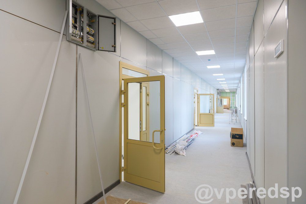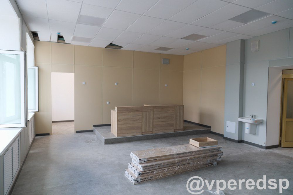 «Сейчас у нас практически полностью готовы третий и четвёртый этажи. Ведутся работы по установке мебели и устранению тех небольших недочётов, которые были выявлены. Второй этаж также готовится к сдаче. Завезено 90 % оборудования, во вторник завезут и установят доски. На первом этаже началась установка оборудования в пищеблоке», — рассказал представитель подрядчика, компании «СтройБазис» Сергей КИЛЬДЮШОВ.