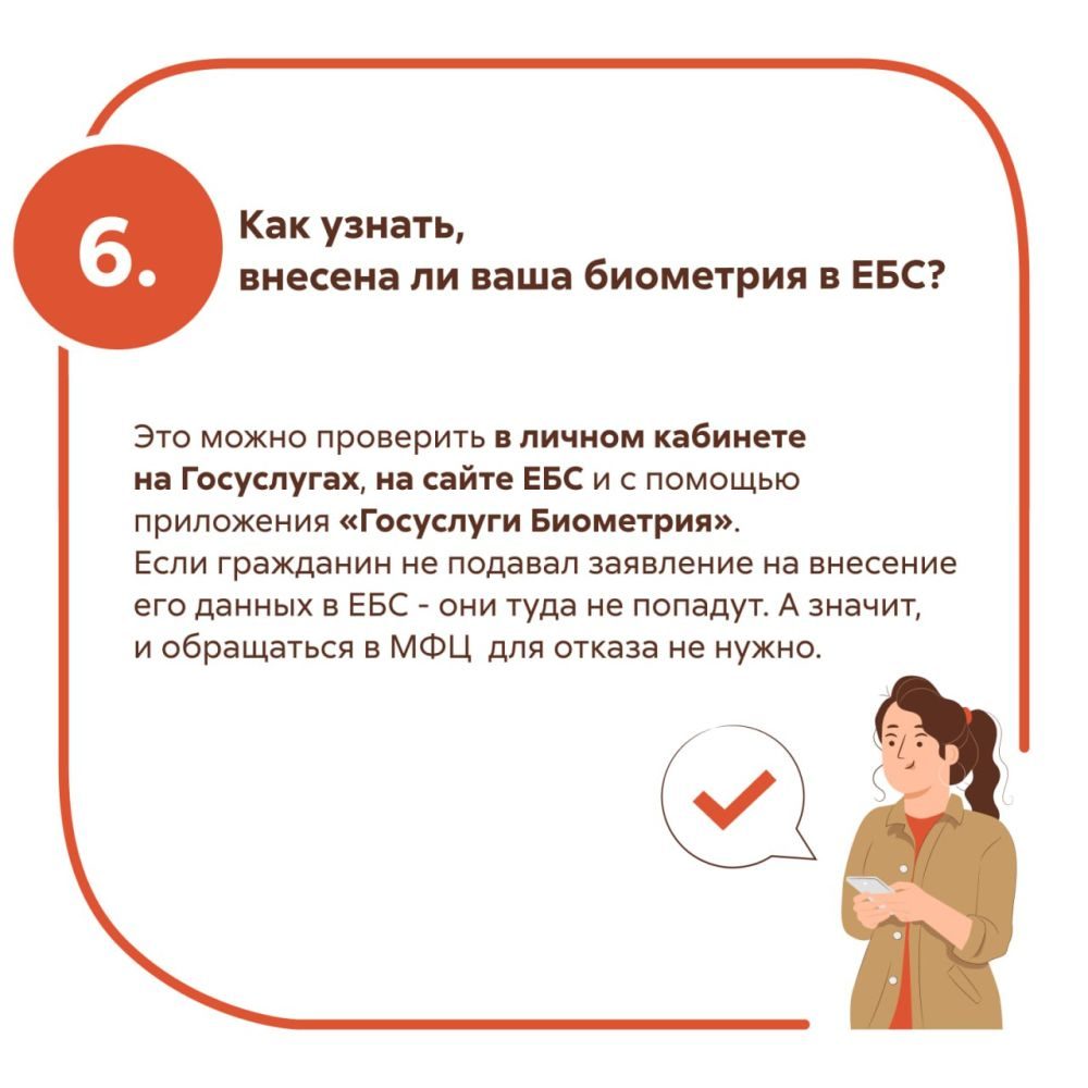 Если биометрия уже передана в ЕБС, её можно самостоятельно удалить в любой момент через «Госуслуги». При этом если уведомление не пришло и вы сами не сдавали биометрию в ЕБС, то в системе она не появится.