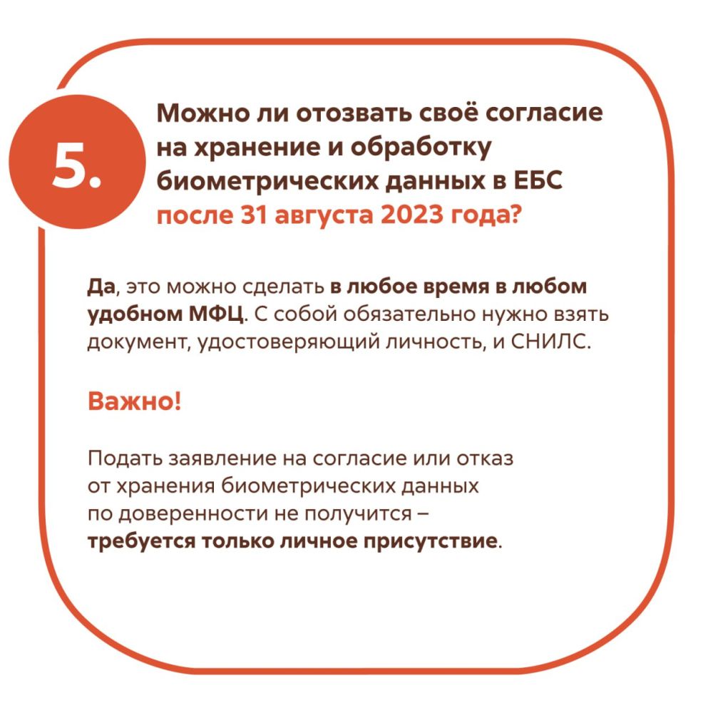 Ровно то же самое можно сделать и в МФЦ, причём, как мне объяснили, запретить сбор биометрии можно в любое время без привязки к дате. Для этого достаточно прийти в МФЦ с паспортом и СНИЛСом и написать заявление. Если вы передумаете, можете отозвать отказ также через МФЦ.