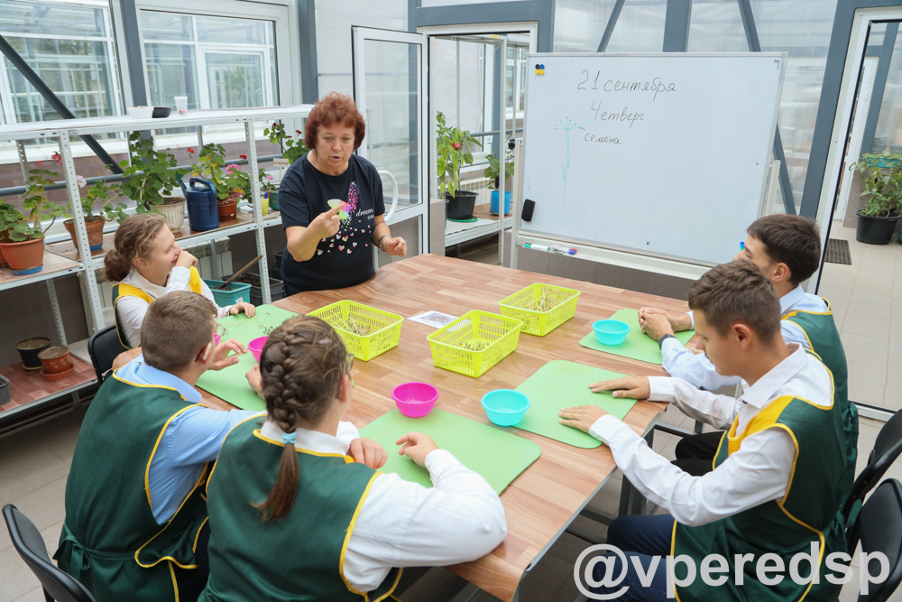 «Сегодня будем работать в теплице, — говорит Наталья ГОРОХОВА своим ученикам одновременно и вслух, и на языке жестов. — Будем знакомиться с семенами. Повторяйте за мной». Так начинается занятие агротерапией: ребята с ОВЗ узнают, как устроено царство растений, а после теории берутся за практику. Зелёная мастерская выросла из занятий технологией. Сейчас здесь настоящий зимний сад, за которым дети ухаживают сами. Большое дело: набрать воды в лейку, полить цветы, протереть влажной губкой могучие листья, осваивать садовый инвентарь. Сюда приходят дети самого разного возраста и уровня развития. Каждому предлагают дело по силам. «Мы хотим, чтобы дети получили навыки работника зелёного хозяйства, — поясняет Наталья Николаевна. — Для этого они должны знать названия инструментов, уметь ими пользоваться, освоить технику безопасности. И работать с растениями — в теплице, на улице в плодовом саду». Для подопечных это место — отдельный мир. Здесь они годами ухаживают за цветами, а после выпуска забирают свои горшки во взрослую жизнь. А вместе с ними и усвоенные на занятиях навыки.