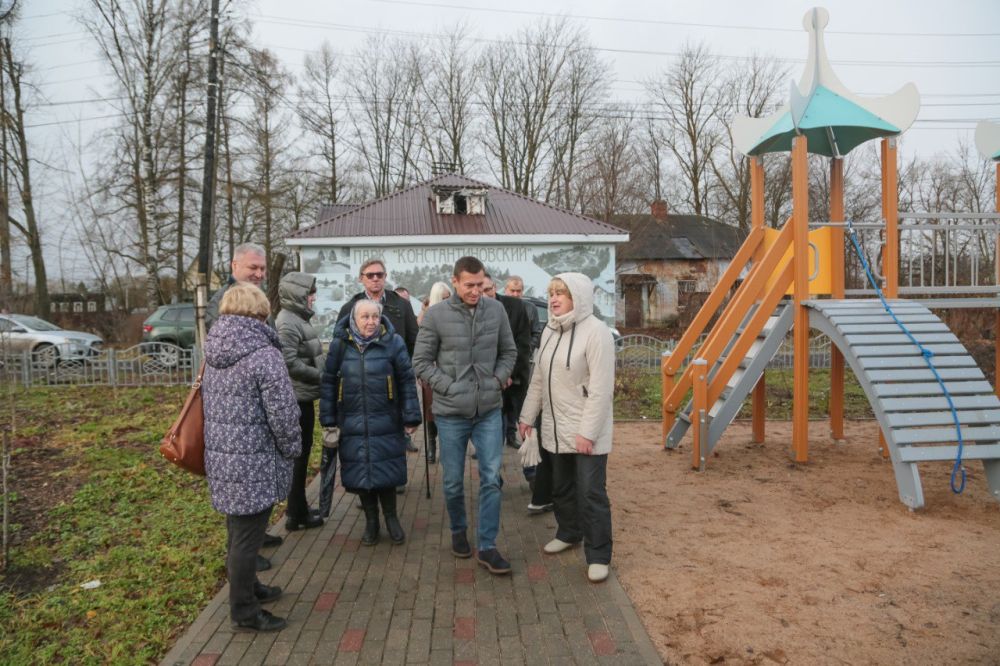 Первым объектом, который осмотрели депутаты, стал сквер в селе Константиново. Сельчане рассматривали разные варианты благоустройства этого общественного пространства и пришли к выводу, что здесь должна появиться детская площадка. Проект был предложен для участия в конкурсе инициативного бюджетирования и получил финансирование из местного и областного бюджетов. По словам жителей, современная детская площадка стала излюбленным местом прогулок и отдыха молодёжи и старшего поколения.