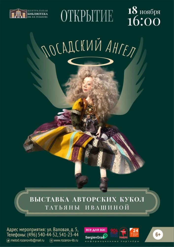 Если прийти чуть пораньше, в 16:00, то можно посетить открытие ещё одной выставки — «Посадский Ангел», где будут представлены авторские куклы мастера Татьяны ИВАШИНОЙ.