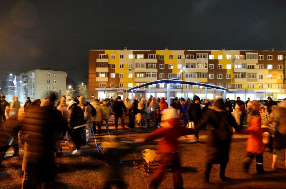 В Пересвете на площади Пухова сегодня зажглись огни на главной городской ёлке. В этом году новую искусственную ель купили прямо накануне праздников.