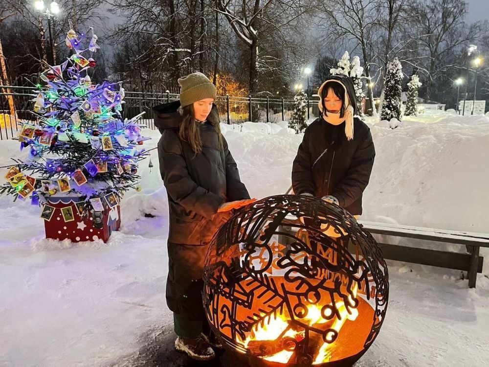 Зона очага стала местом теплых дружеских встреч. Здесь состоялась презентация креативного проекта «Ёлки-парки». А чай из самовара помог согреться в этот чудесный зимний вечер!