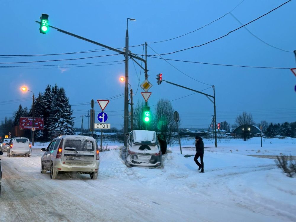 Одна из возможных причин выезда — сложная дорожная обстановка из-за разыгравшегося снегопада: водитель просто не смог вовремя затормозить.