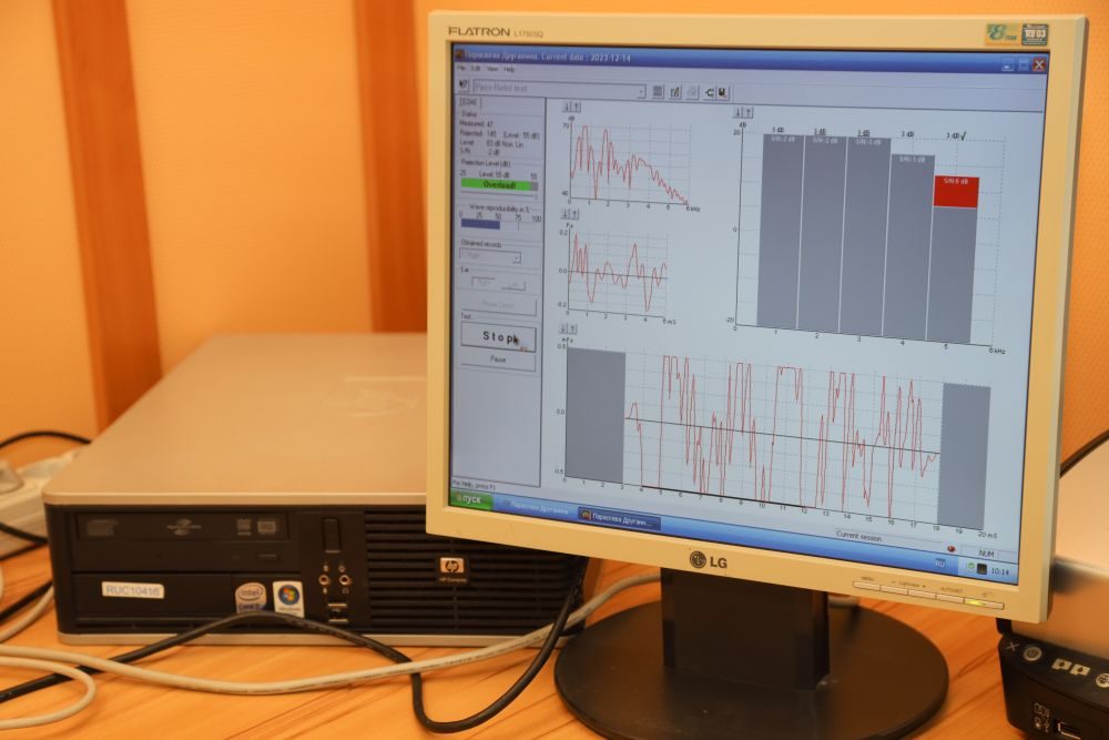 После дети приходят в аудиологический кабинет. Здесь огромное количество аппаратуры, благодаря которой аудиолог Татьяна Шумакова может «заглянуть» за барабанную перепонку и выяснить, в каком состоянии находится среднее ухо — молоточек, наковальня, стремечко и улитка. В первую очередь ребёнку делают тимпанограмму, чтобы убедиться, что никакие отиты не помешают дальнейшим проверкам. А потом начинается самое интересное. Методы обследования делятся на субъективные и объективные. То есть те, где человек прислушивается к своим ощущениям, и те, при которых техника сама делает выводы. Те, о которых рассказала Татьяна Владимировна, мы проверили на себе. Это быстро и не страшно.