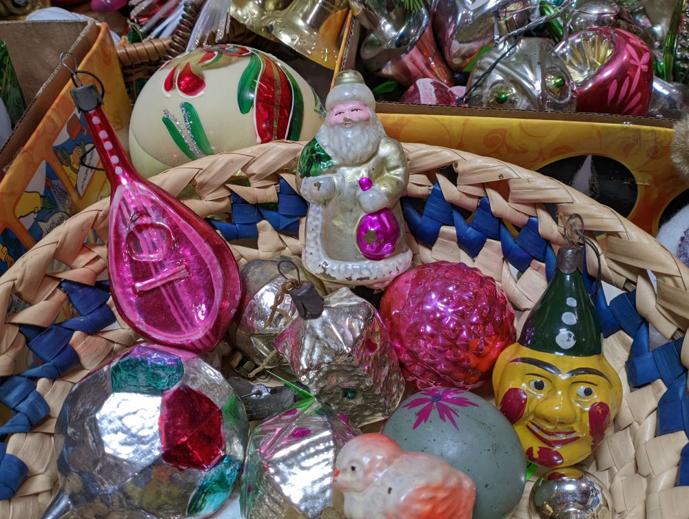Выдувные стеклянные игрушки — ещё одни экземпляры коллекции — начали производить ближе к 1940-м годам, когда в СССР на официальном уровне вернулась традиция проводить новогодние детские ёлки. Есть у Юрия и множество послевоенных игрушек из стекляруса. Они тоже, что называется, «в цене». Но такая игрушка должна быть в хорошем состоянии, без каких-либо дефектов.