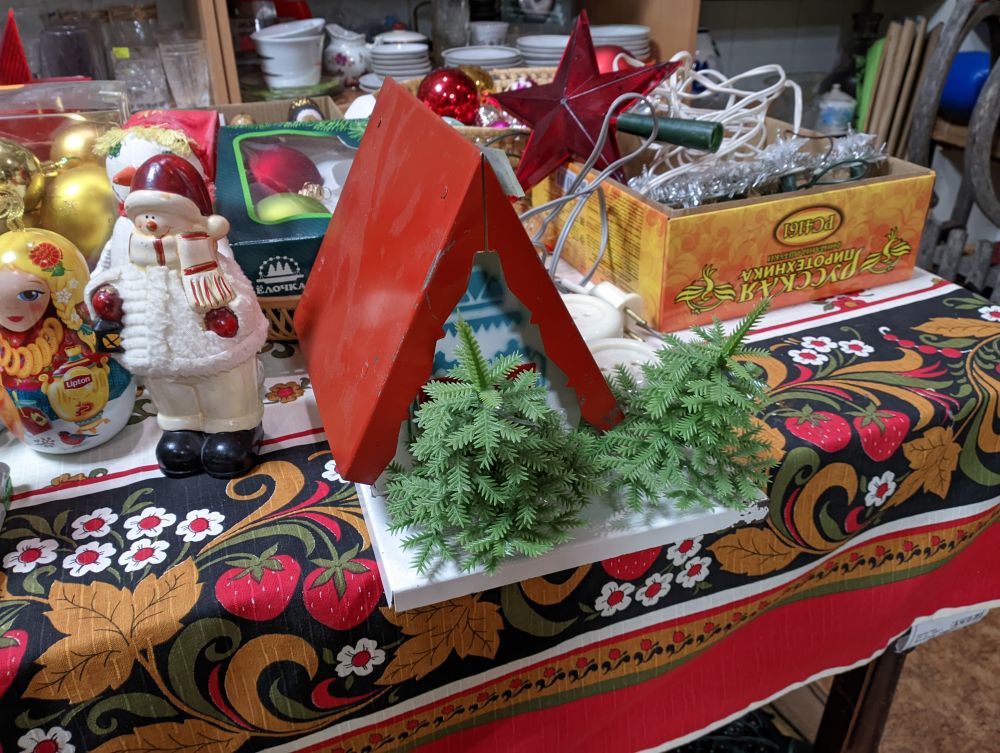 В коллекции Юрия есть и другие интересные новогодние предметы. Например , небольшой домик, который функционирует как релейный переключатель для двух гирлянд. Это устройство мало кому известно, хотя выпускалось в достаточно большом количестве. Чтобы «научить» две статичные советские гирлянды поочерёдно мигать, их подключали в такую вот «избушку». А розетки, как непривлекательный элемент, закрывали маленькой пластиковой ёлочкой. Кроме того, в СССР выпускались редкие гирлянды с фигурными лампочками: плафоны в форме Дедов Морозов, космонавтов или фруктов ввинчивались в патроны на проводе, и таких лампочек в гирлянде насчитывалось порядка тридцати.