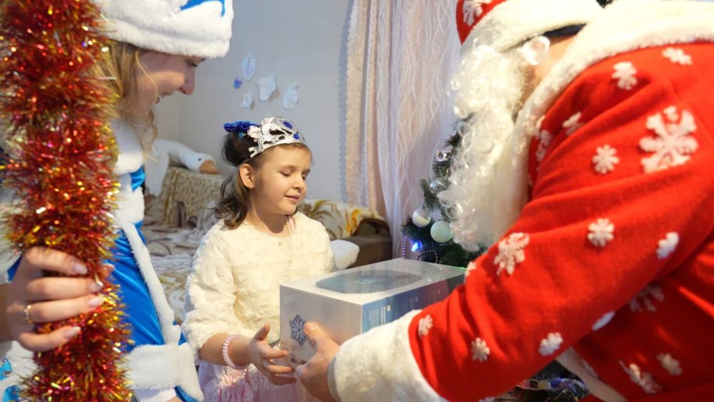 «Ёлка желаний» — так назвали благотворительную акцию в нашей стране. Суть её проста: любой человек может исполнить желание ребёнка. Узнать их можно из писем Деду Морозу, которыми украшают ёлки. Уже не первый год новогодние подарки для детей готовят в окружной администрации. В трогательных письмах — надежда на маленькую радость: машинка на пульте управления, пушистый зайчик, умная колонка. Сорок семей, где воспитываются дети с онкологическими заболеваниями, с нетерпением ждали встречи с Дедом Морозом и Снегурочкой.