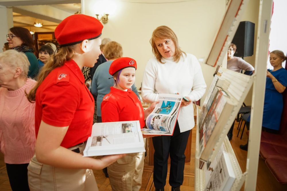 Гостей уже в фойе встречал муниципальный оркестр. Поисковики и волонтёры организовали выставку предметов, найденных при раскопках на месте боёв Великой Отечественной войны и привезённых с Донбасса — обломки оружия, рации и шевроны, захваченные у противника.