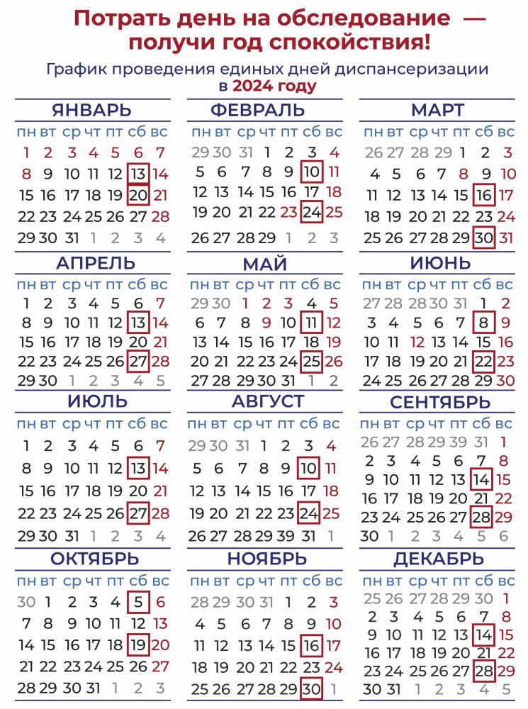На этой неделе, в связи с предстоящими праздниками, это рабочий день. В субботу поликлиники будут принимать всех желающих пройти первый этап обследования с 8 утра до 14:00. В районной поликлинике ожидается максимальное количество пациентов: медперсонал планирует принять до ста человек.