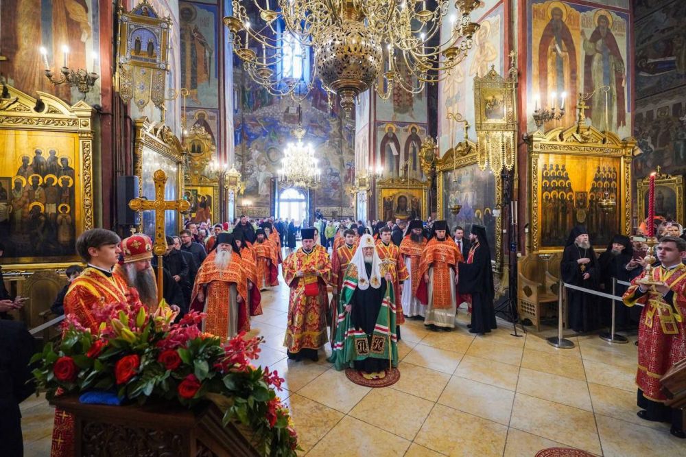 Патриарх Кирилл посетил Троицкий собор, поклонился святыням Серапионовой палаты и мощам преподобного Сергия Радонежского. А после совершил Божественную Литургию.
