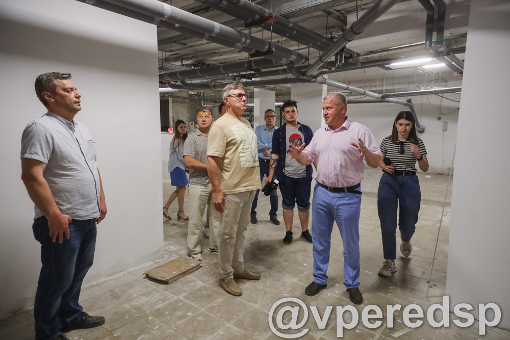 Ещё одна локация, где побывали депутаты — новый дом на улице Театральной в Краснозаводске, второй по счёту для переселения жильцов аварийного фонда. Здесь уже завершены монолитные работы, в первом корпусе дома идёт отделка квартир, разведение коммуникаций и облицовка фасада базальтовой ватой и вентилируемым фасадом. Новостройка рассчитана на 267 квартир, дом будет оснащён лифтовыми шахтами.