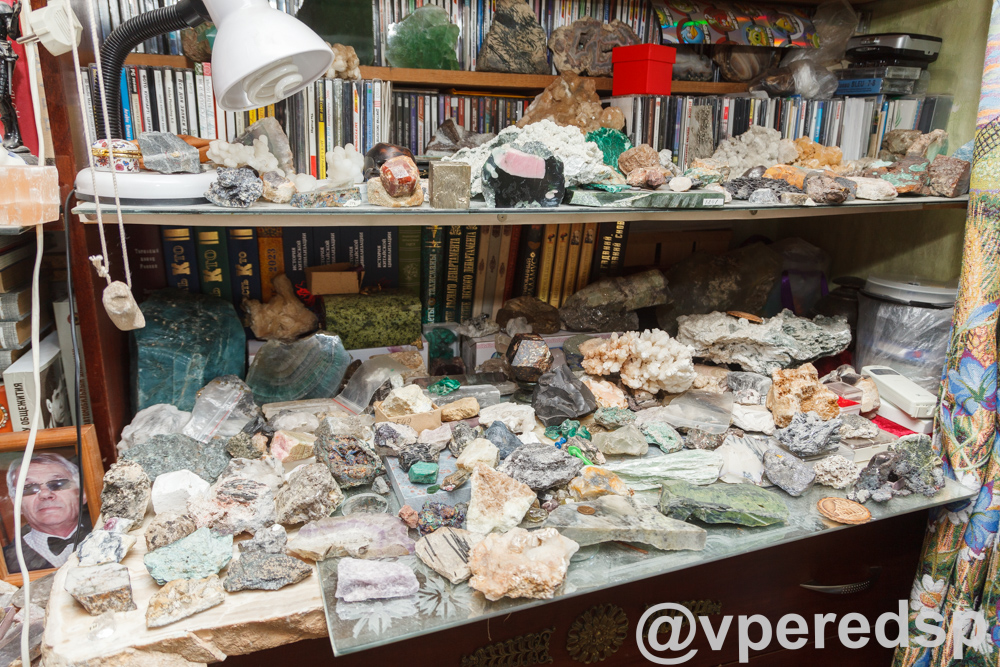 Впечатляющая сокровищница знаний и минералов собрана сергиевопосадцем Анатолием Берсеневым: квартира геолога и геофизика по образованию и коллекционера минералов, горных пород и окаменелостей буквально забита образцами. Каждая полочка, каждый подоконник, тумбочка, любой свободный уголок заставлены экспонатами, зачастую мирового класса. Это уже третья коллекция, которую геолог собрал за свою жизнь, лично участвуя в экспедициях по всему миру.