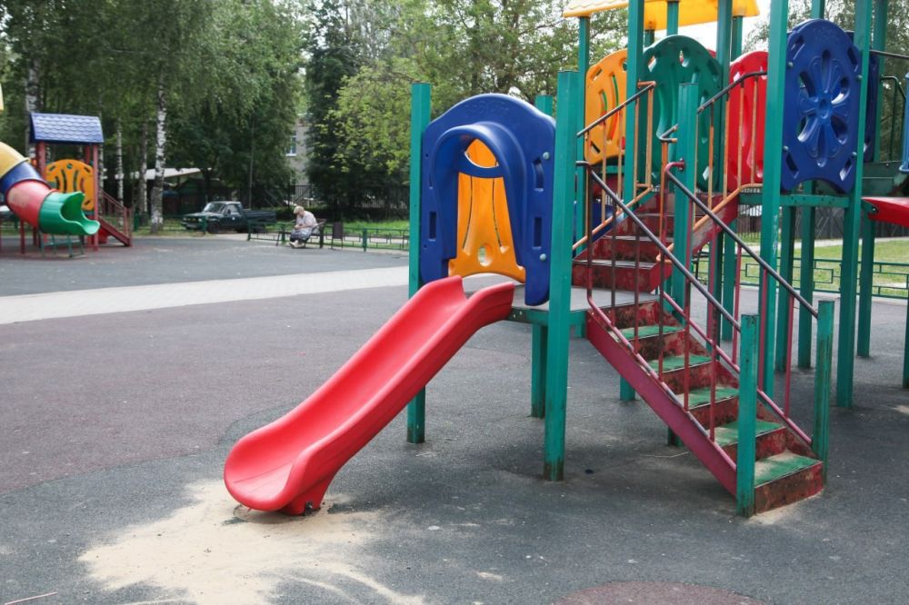 Точечная, но важная работа: заменены подвес для качелей и спуск горки возле дома № 94А по Новоугличскому шоссе