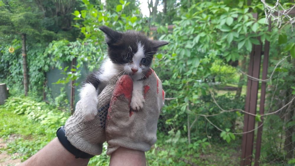 Провалившегося в бочку котёнка вызволили спасатели