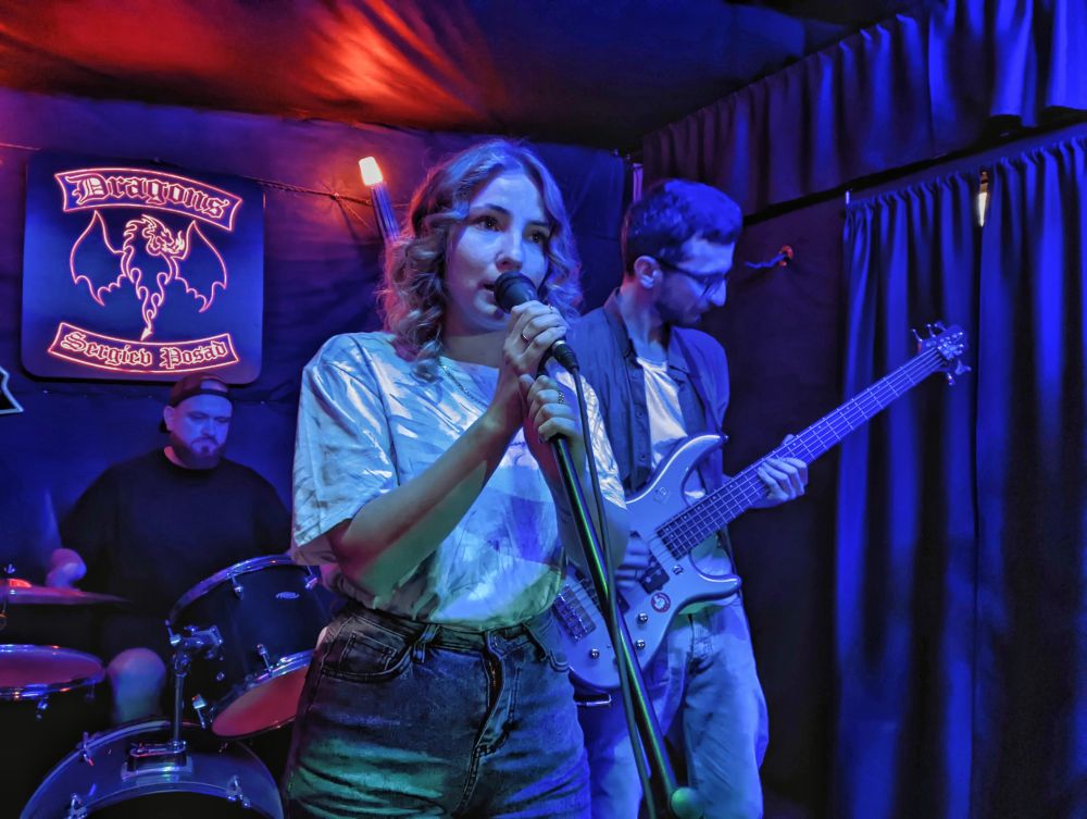 «Песня у нас чаще всего начинается с текста, потому что мне трудно писать под готовую музыку. В основном я пишу грустные песни о любви, о расставаниях и изменах. Хотя в жизни сама такого не переживала, я замужем», — поделилась вокалистка. До этого у девушки был опыт выступлений только в Сергиево-Посадском колледже в период студенчества, но теперь в компании единомышленников её любительские наброски превращаются в довольно неплохие песни.