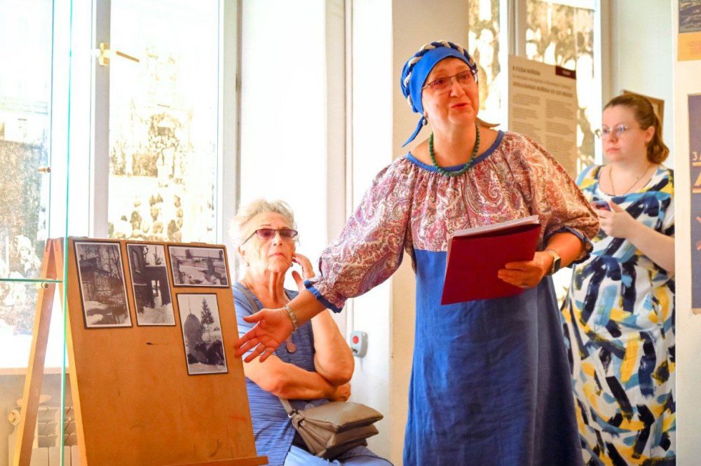 На мольберте были показаны чёрно-белые фотографии того самого дома под номером номер 81 на улице Комсомольской (ныне Вифанской), сохранившегося до наших дней. Наиболее активные участники встречи помогали проведению экскурсии — в нужный момент озвучивали текст со специальных карточек.
