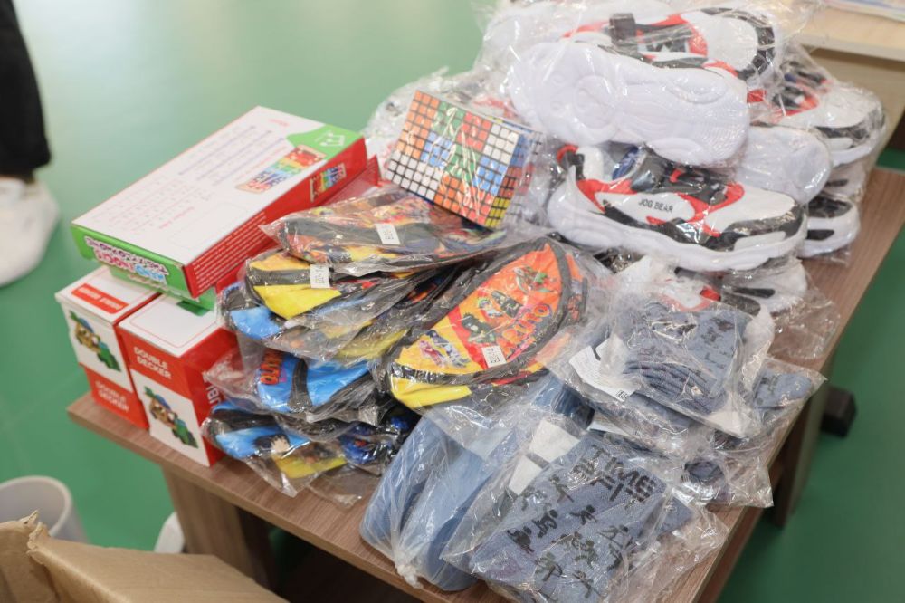 После небольшого вокального выступления настала очередь подарков. На пожертвования от неравнодушных людей «Отцы рядом» приобрели и передали Семейному центру им. А. И. Мещерякова десятки пар кроссовок и носков, сумки, развивающие игрушки и многое другое. Также учреждение получило от организации стиральные машины, которые отправятся на замену сломанным в Геленджик. Там размещается круглогодичная база отдыха для воспитанников центра.