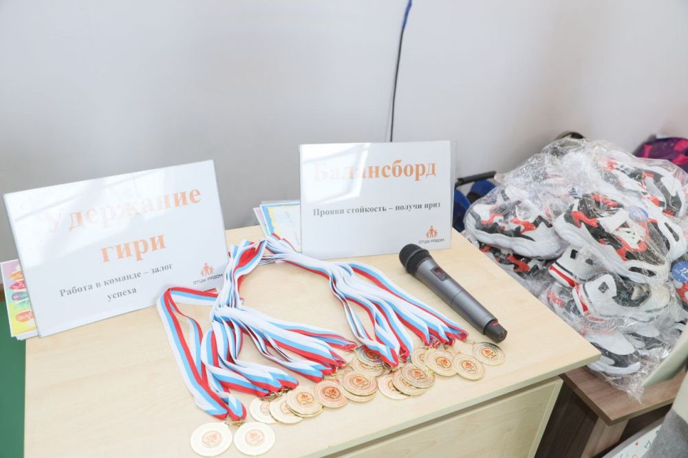 Музыкальную часть праздника сменила спортивная. Воспитанникам предстояло попробовать себя в двух дисциплинах: удержание гири и сохранение равновесия на баланс борде. За свою волю к победе юные спортсмены получили медали.