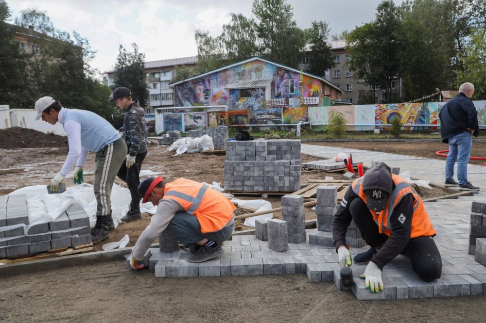 Сейчас выкладывается плитка, в планах — установка детской площадки с резиновым покрытием и игровыми элементами.