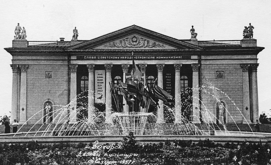 Отмотаем время назад. Представьте: совсем недавно закончилась Великая Отечественная война. Половина страны, без преувеличения, лежит в руинах. Только что отменили карточки на хлеб. Ещё не все солдаты вернулись домой, послевоенная демобилизация завершилась несколько месяцев назад. Загорск не пострадал от боевых действий, но проспект Красной Армии представлял собой типичную улицу небольшого городка с обветшавшими двухэтажными домами с печным отоплением. И вот позади них постепенно стало вырастать большое, высокое, очень красивое здание с колоннами.