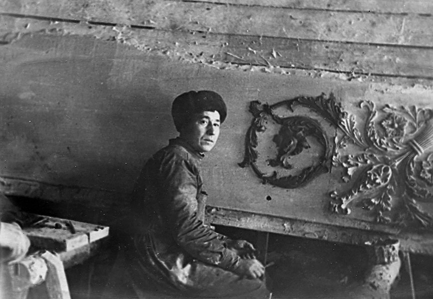 В 2004 году лепщица Валентина Александрова (Романова) на страницах газеты «Вперёд» вспоминала: «Всю работу выполняли вместе, сообща. Кто-то лепил, ктото формовал, кто-то устанавливал готовое изделие на место. Процесс это сложный. Друг другу помогали. Но у каждого из нас на память была выполнена какая-то вещь, от начала и до конца сделанная самостоятельно. Когда я прихожу в Большой зал, то сразу обращаю внимание на перевитую лентой с серпом и молотом гирлянду из дубовых листьев, обрамляющую сцену. Это моя работа».