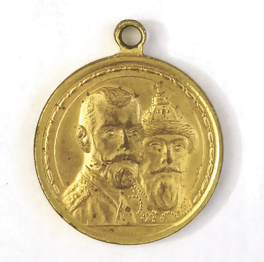 Инвентарная книга коллекции «Нумизматика» открывается предметом, не содержащим драгоценные металлы. Это бронзовая медаль, выпущенная в память 300-летия царствования Дома Романовых. На её лицевой стороне находятся погрудные портреты императора Николая II в полковничьем мундире и основателя династии царя Михаила Фёдоровича в шапке Мономаха и бармах. Юбилей отмечался в России в течение всего 1913 года; Троице-Сергиева лавра также не осталась в стороне: в Троицком соборе совершили панихиду по умершим государям Дома Романовых, на следующий день, 21 февраля, в день призвания Михаила Фёдоровича на царство — крестный ход на Красногорскую площадь, позже Лавру посетил сам государь и члены августейшей семьи.
