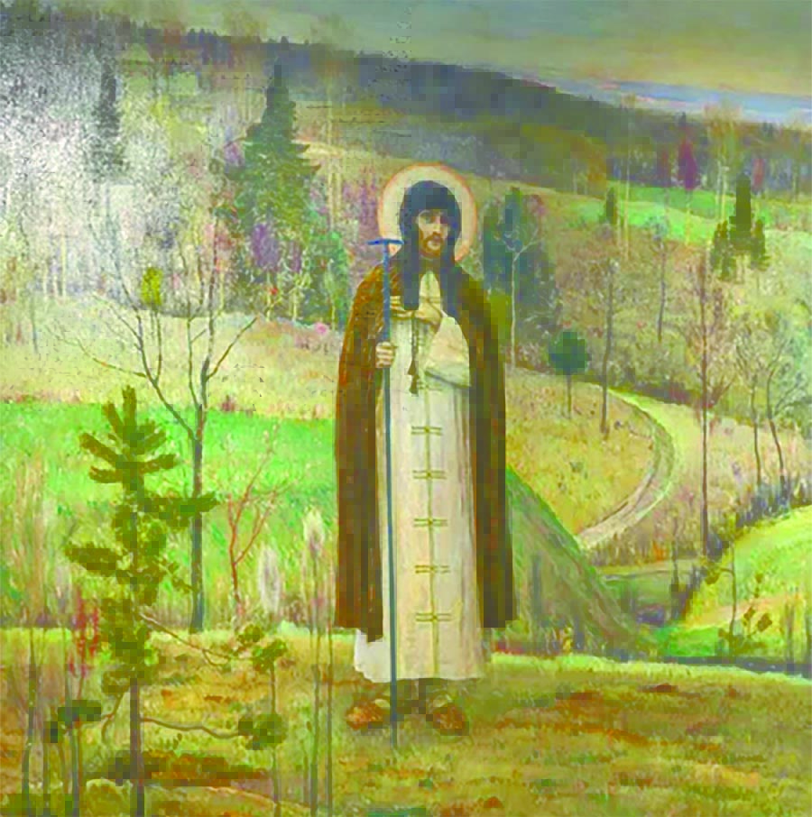 • Картина «Преподобный Сергий Радонежский», 1899 год, автор Михаил Нестеров. Холст, масло. Экспонат из Государственного Русского музея. Самый узнаваемый образ Преподобного, близкий и современникам автора, и сегодняшнему зрителю. Художник начал работать над полотном в 1891 году, ещё не закончив другие картины цикла. Однако, несмотря на кажущуюся простоту композиции, написание образа Сергия Радонежского заняло более 7 лет, и завершил работу Нестеров только в 1899 г. Интересно, что писал эту картину Нестеров поверх первого варианта другой своей работы — «Юность Сергия». В правом нижнем углу на картине — авторская надпись, сделанная самим Михаилом Нестеровым.