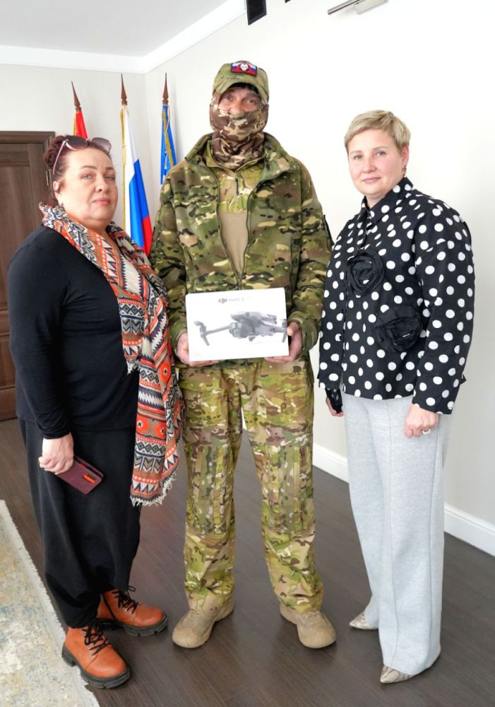 Из рук главы округа боец получил квадрокоптерMavic. Применение этого аппарата «за ленточкой» позволяет не только производить разведку, но и доставлять продукты штурмовикам на закреплённых позициях. Также непосредственно перед возвращением на фронт для земляка и его подразделения Центр поддержки участников СВО и членов их семей скомплектует гуманитарный груз.