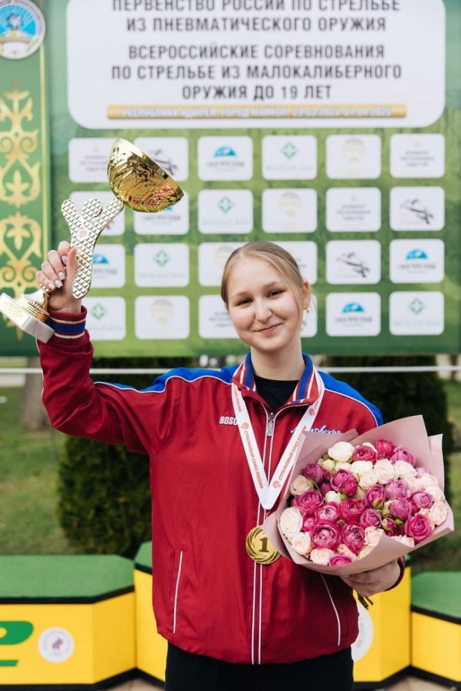 Девушка завоевала золотую медаль в упражнении «Винтовка малокалиберная, 50 м, 60 выстрелов лежа», набрав впечатляющие 619,2 очка.