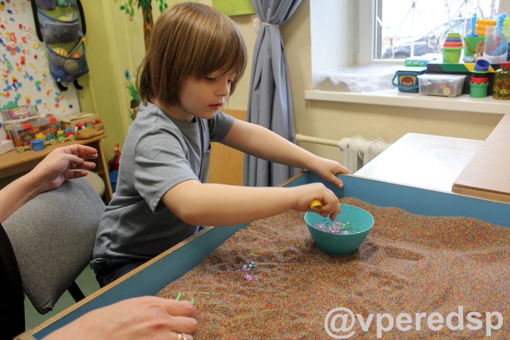 — Природа придумала гениальный механизм. Наш мозг развивается автономно в непрерывном режиме при помощи органов чувств: зрение, слух, тактильные ощущения, вкус, запах. Например, увидели разноцветную радугу, услышали трель соловья, потрогали пушистую кошку, понюхали ароматный цветок, откусили сладкую конфетку — поступает информация в ЦНС, и достигается сенсорное насыщение. У детей с аутизмом из-за того, что связи между нейронами мозга нарушены, нервная система не получает так называемые сенсорные эталоны в нужном объёме. Это приводит к сбоям в работе ЦНС. Соответственно, необходимо сенсорное насыщение в искусственно созданных условиях. Специалисты ведут всестороннюю работу с нервной системой ребёнка. При помощи сенсорной интеграции: визуальная светостимуляция, музыкотерапия, ароматерапия, канистерапия, иппотерапия, холдинг-терапия, тактильные практики с песком и другими структурами. Происходит сенсорное насыщение мозговых систем ребёнка. Даже всем привычный массаж – часть глобальной работы по сенсорному насыщению.