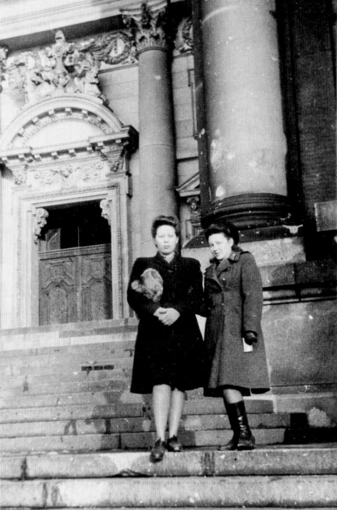 Евгения Алистратова родилась и выросла в Хотькове. До войны она училась в Московском институте иностранных языков и была мобилизована прямо из института в ряды Красной Армии в качестве военного переводчика. Она дошла до Берлина и сфотографировалась на ступенях Рейхстага, оставив там свою подпись