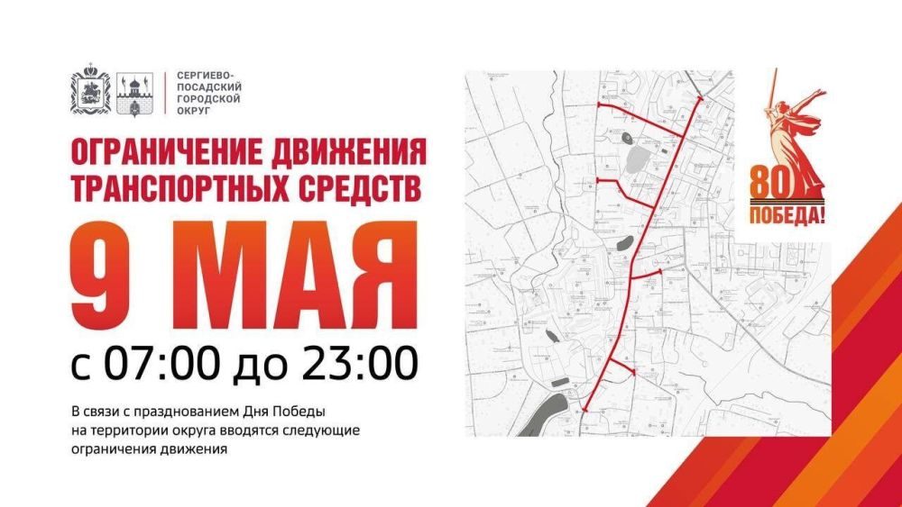 ❗️9 мая с 7:00 до 23:00 будет ограничено движение: