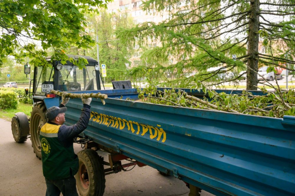 В Сергиево-Посадском округе продолжается уборка упавших деревьев, надломленных и сломанных веток после первомайского шквала