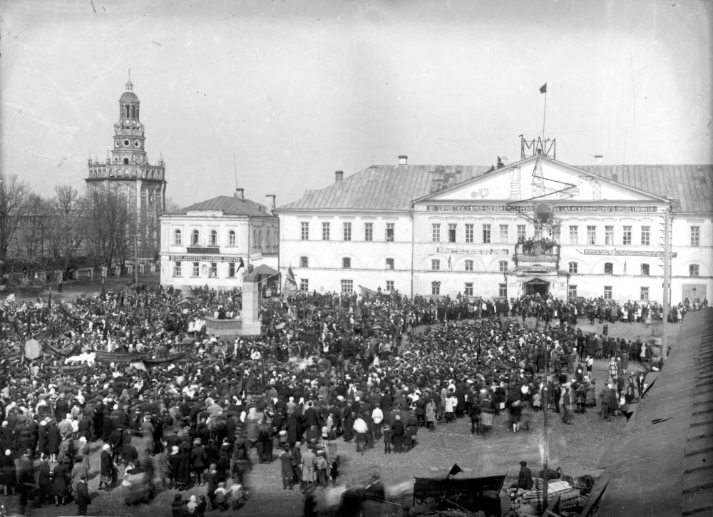 Первомайский митинг во второй половине 1920-х. Памятник Ленину перед зданием установлен в 1925 году