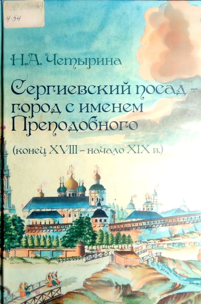 Сегодня расскажем о двух книгах Натальи Аркадьевны Четыриной. Она кандидат исторических наук, доцент, научный сотрудник кафедры истории и теории политики факультета политологии МГУ имени М. В. Ломоносова. Более 40 лет занимается изучением истории Сергиева Посада и неоднократно выступала с лекциями на заседаниях нашего краеведческого клуба «Хронос». Ею опубликовано более 100 научных и учебно-методических работ по истории, городоведению, местному управлению, демографии и повседневной жизни России XVIII-XIX вв. Её статьи неоднократно выходили в «Краеведческом вестнике».