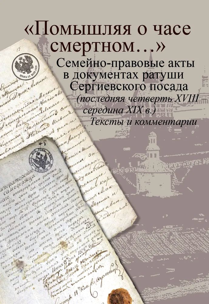 Осмыслить историю Сергиева Посада того же периода сквозь призму истории бытовой, семейной и биографической поможет другое издание — книга «Помышляя о часе смертном…»: семейно-правовые акты в документах ратуши Сергиевского посада (последняя четверть XVIII–середина XIX в.)». Это сборник уникальных документальных материалов, извлечённых автором-составителем из архивных фондов.