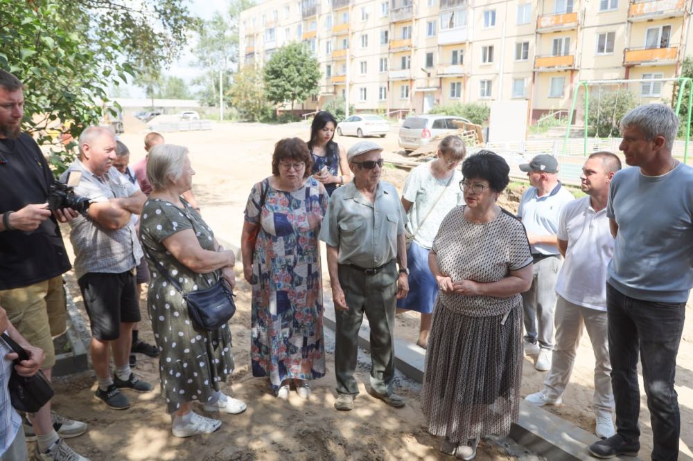 В Абрамово председатель окружного Совета депутатов Рита Тихомирова с коллегами проверили ход комплексного благоустройства двора многоквартирных домов №13 и 14