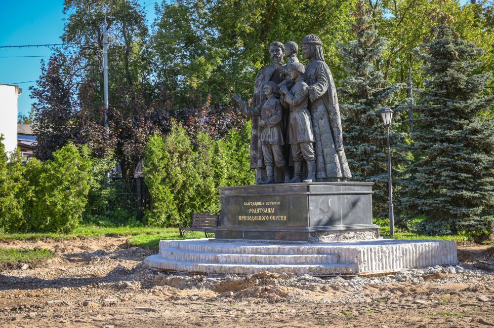 Памятник родителям Сергия Радонежского уже благоустраивают, ремонтируют пьедестал и заменяют плиточное покрытие.