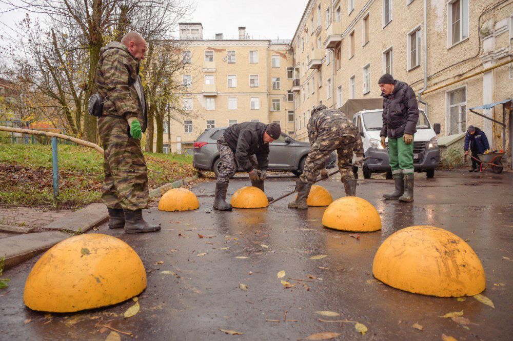 Специалисты МБУ «Благоустройство СП» установили во дворе дома 1а по пр. Красной Армии парковочные ограничители