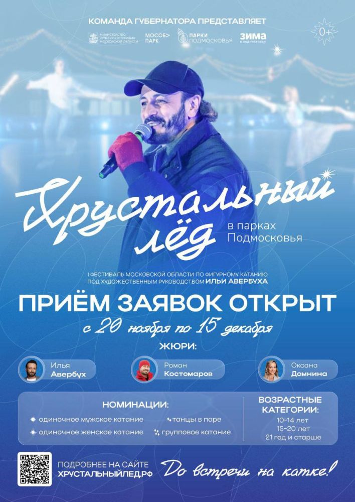 Стартовал приём заявок на участие в первом областном фестивале по фигурному катанию «Хрустальный лёд» под художественным руководством Ильи Авербуха